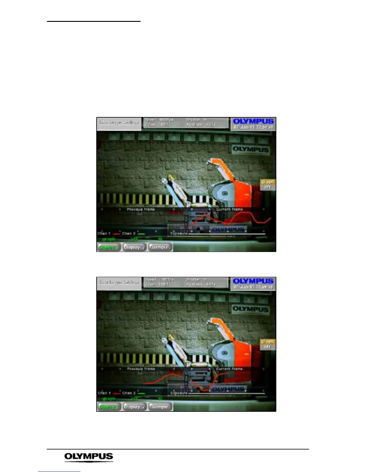 and the exposure period. The data log is also shown and it is