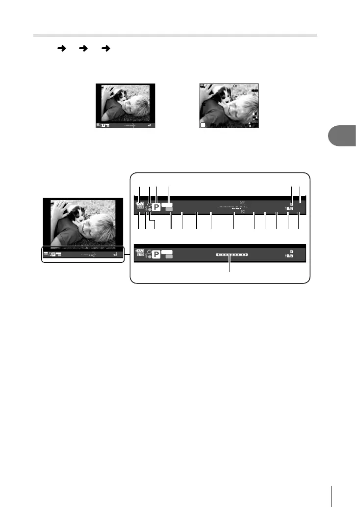 Style 1/2: Displays only main items such as shutter speed and aperture value