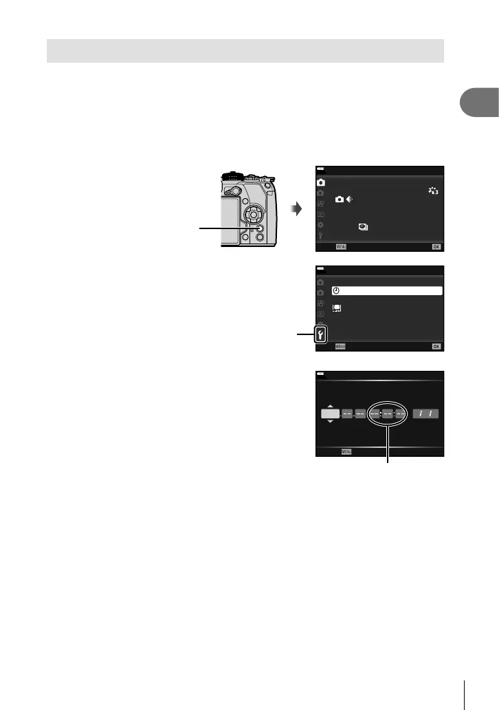 • If the battery is removed from the camera and the camera is left for a while, the date and