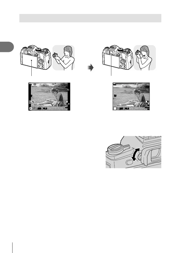 put your eye to the viewfi nder. When you take your eye away, the sensor turns the