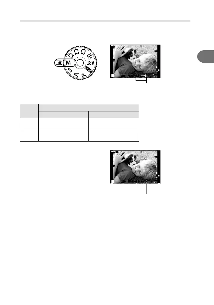 • The exposure determined by the aperture value and shutter speed you have set and
