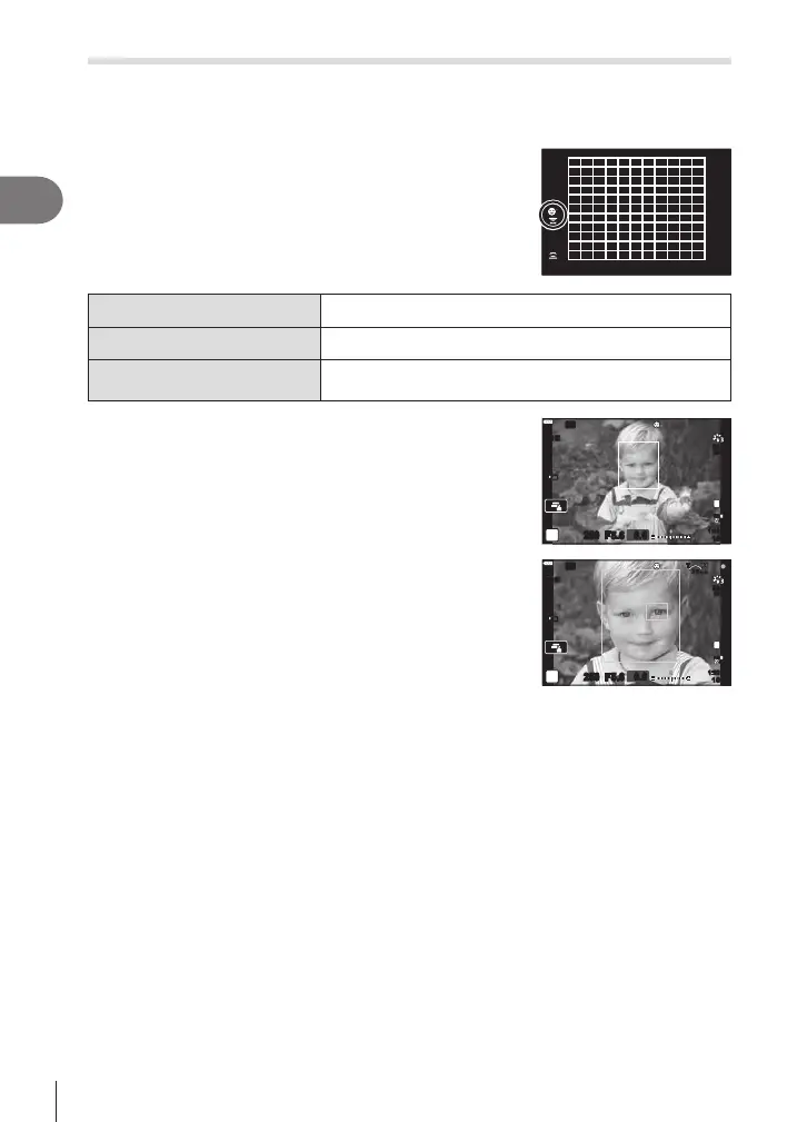 • Face priority is also available in [MF] (P. 75). Faces detected by the camera are