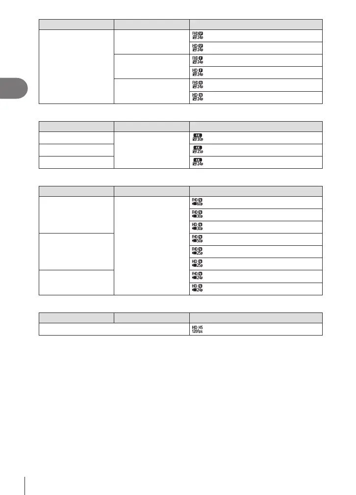 The following options are available when [4K] is selected for movie mode: