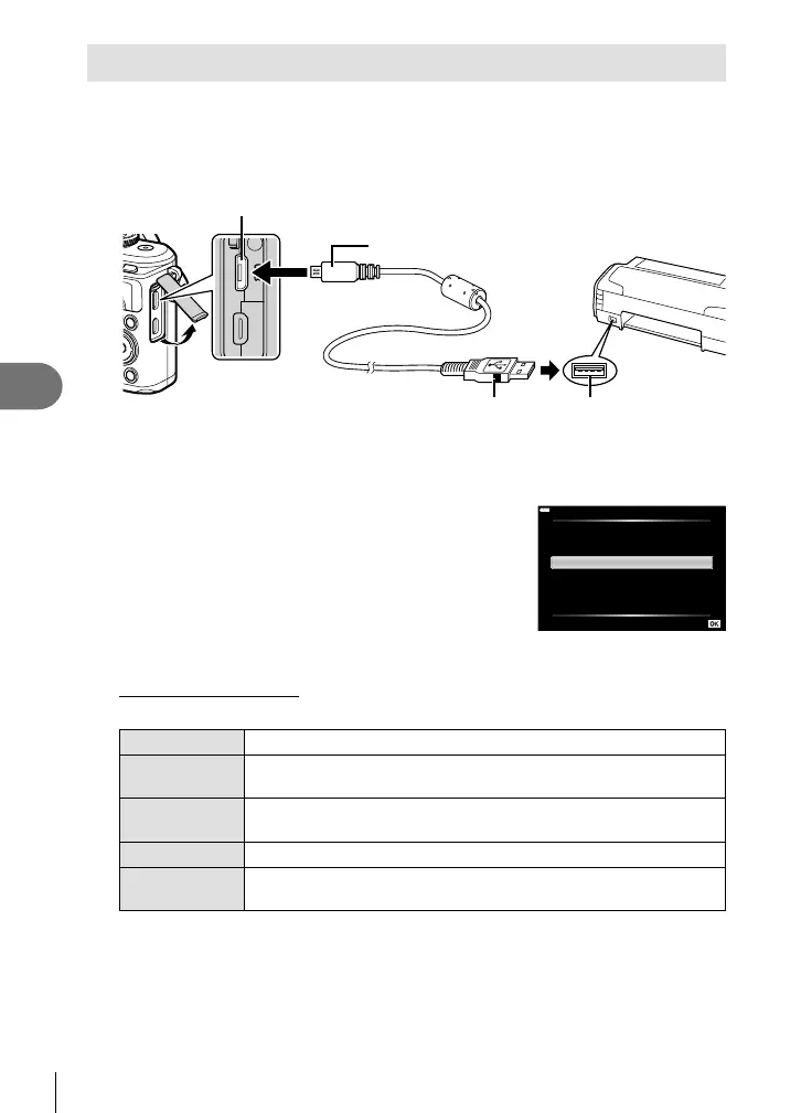 • When the camera is connected to a printer via USB, a dialog should be displayed in