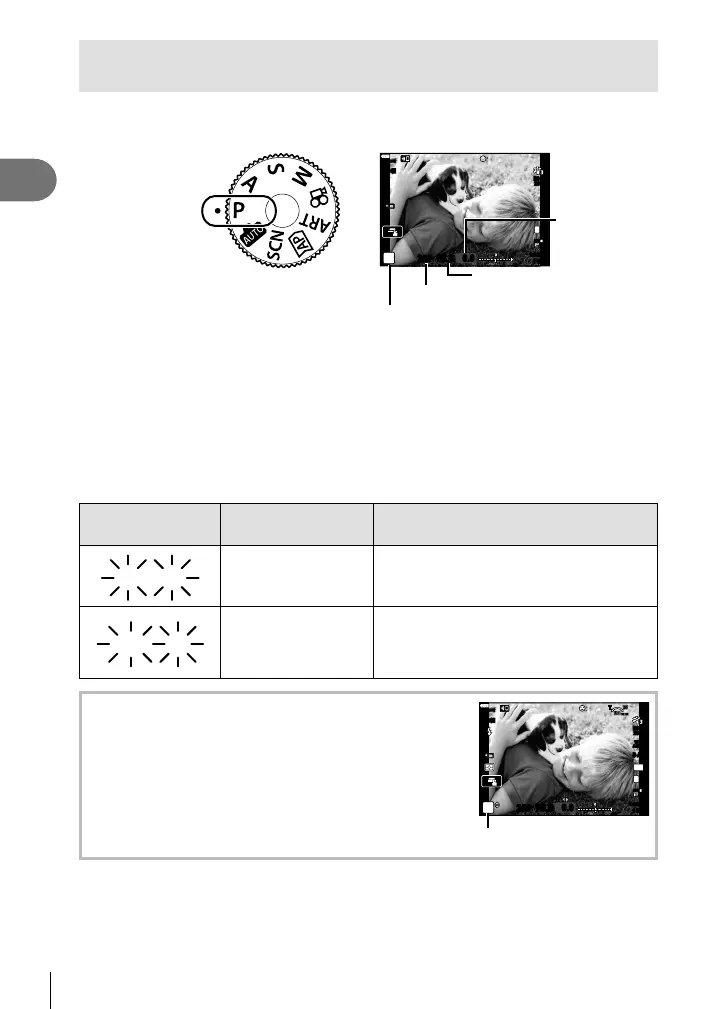 and shutter speed according to subject brightness. Set the mode dial to P.