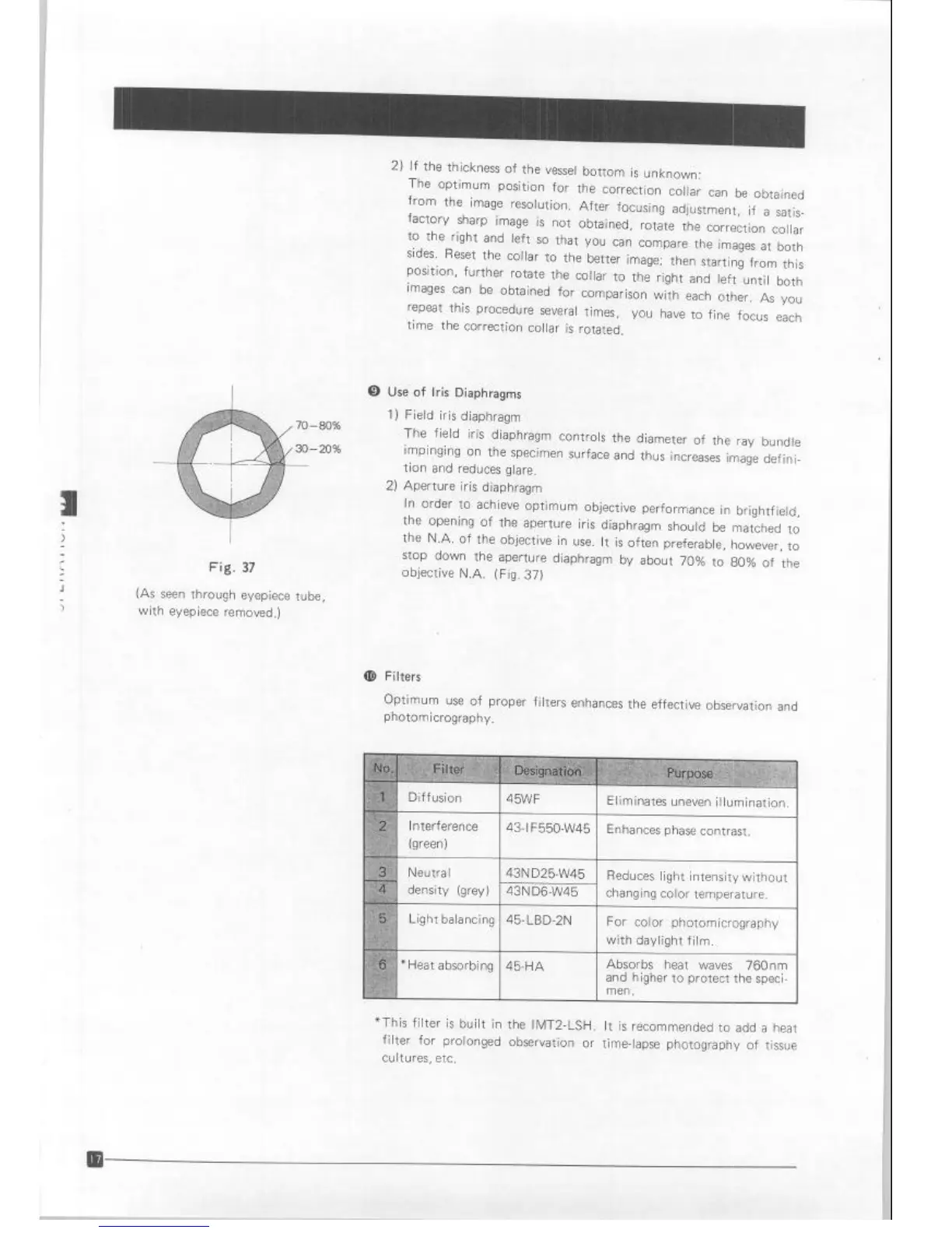 0 Use of Iris Diaphragms