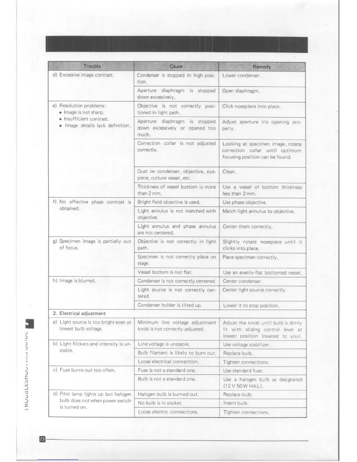 ?) Resolution problems: Objective is not correctly posi- Click nosepiece into place.