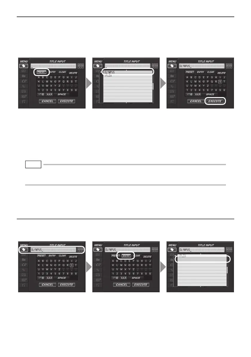 inputting titles. You can register a maximum of 50 character strings to preset titles.