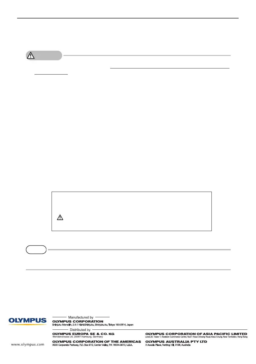 • Do not leave the distal end of the insertion tube keeping its illumination turned ON near the flammable sub-