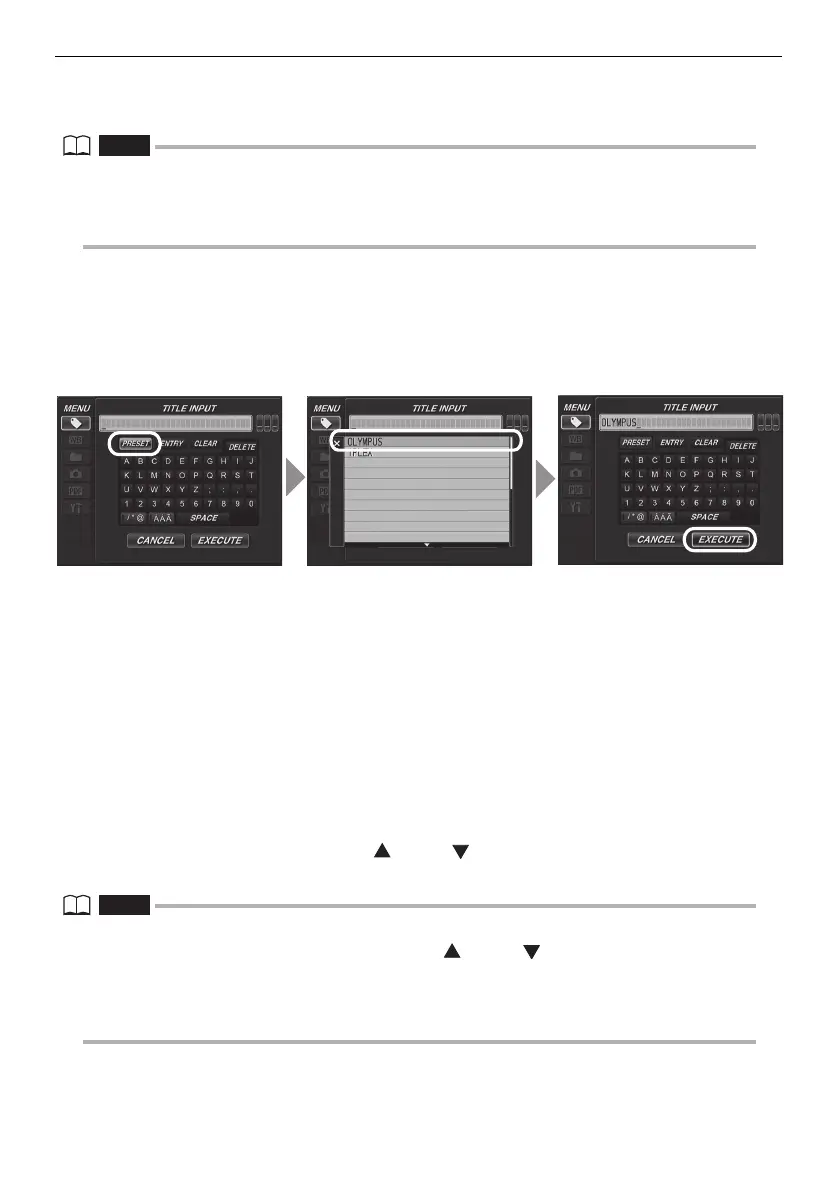 • The preset title list has two pages. To toggle between the pages, select the text string in line 1 or line 10 of