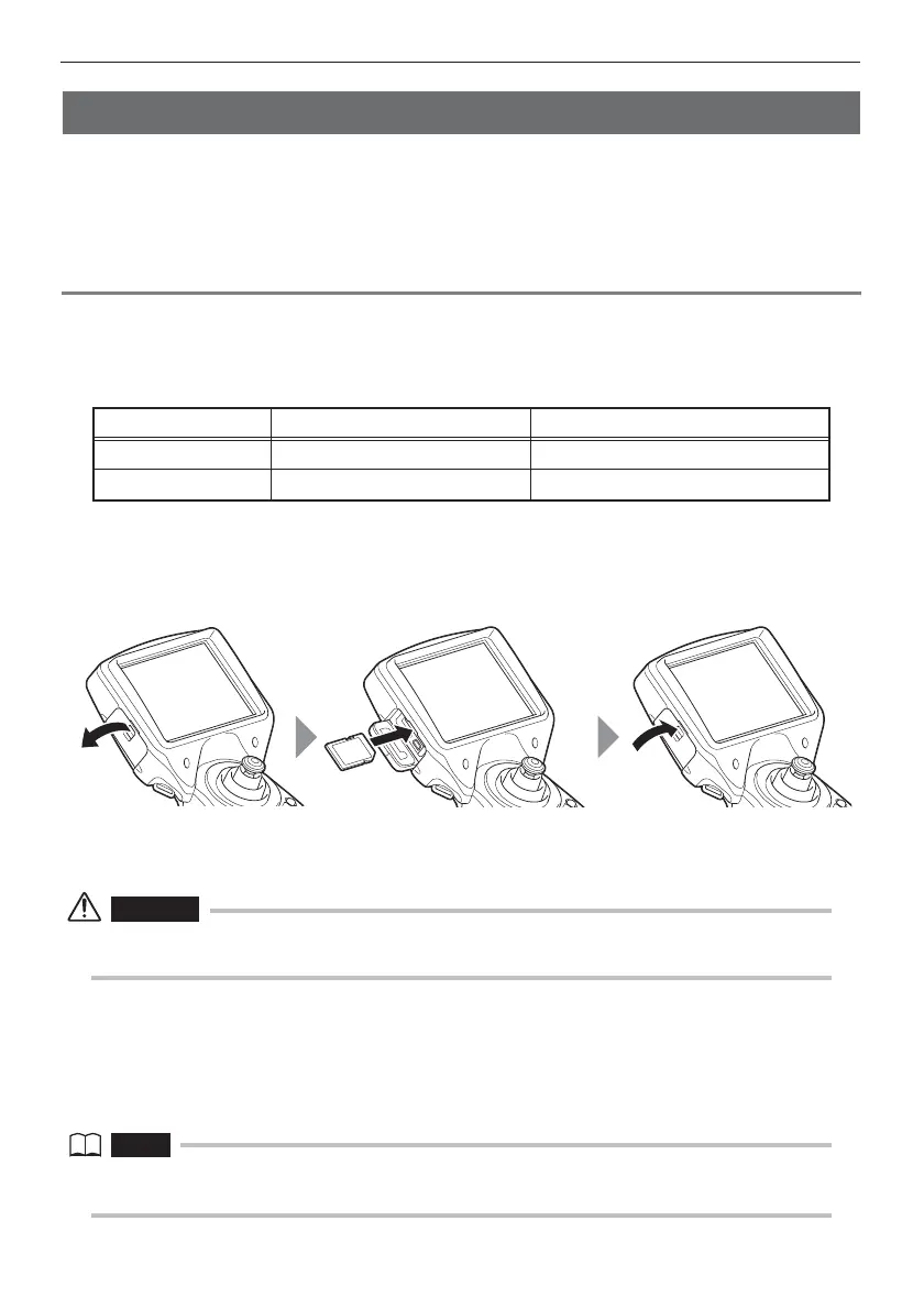 Use either the provided SD card or a recommended Class 6 or higher SDHC card for storage. Use