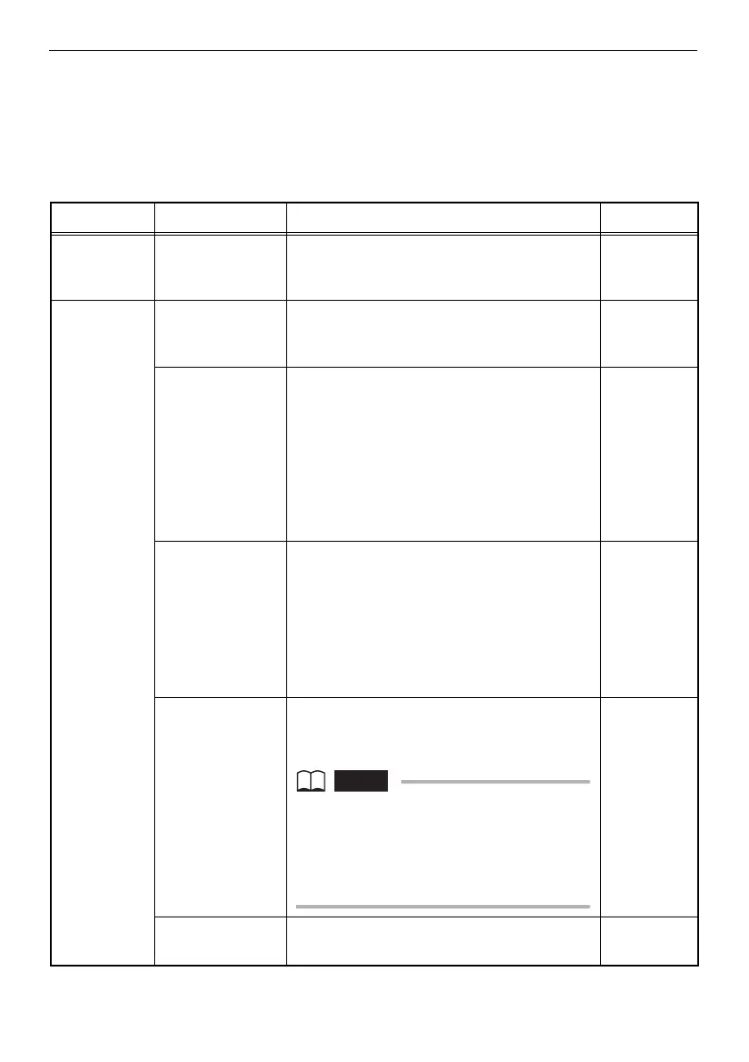 Main menu Submenu Description of function Initial status