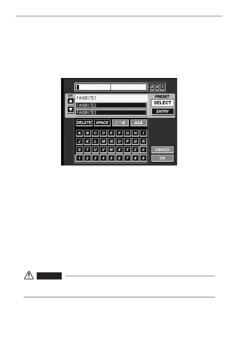 To cancel accessing favorites, select the highlighted “SELECT” button and press
