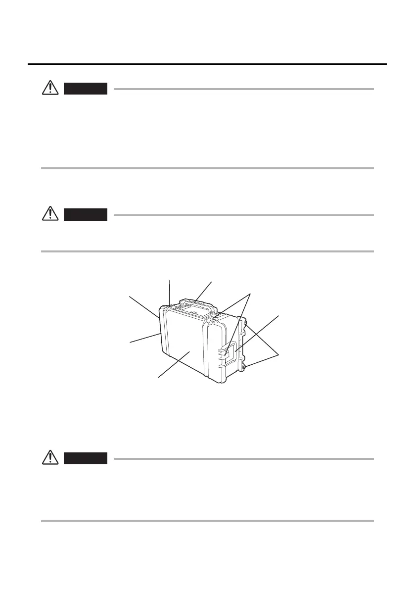 • Before transporting the case, inspect the exterior parts, handles, wheels and latch of the case