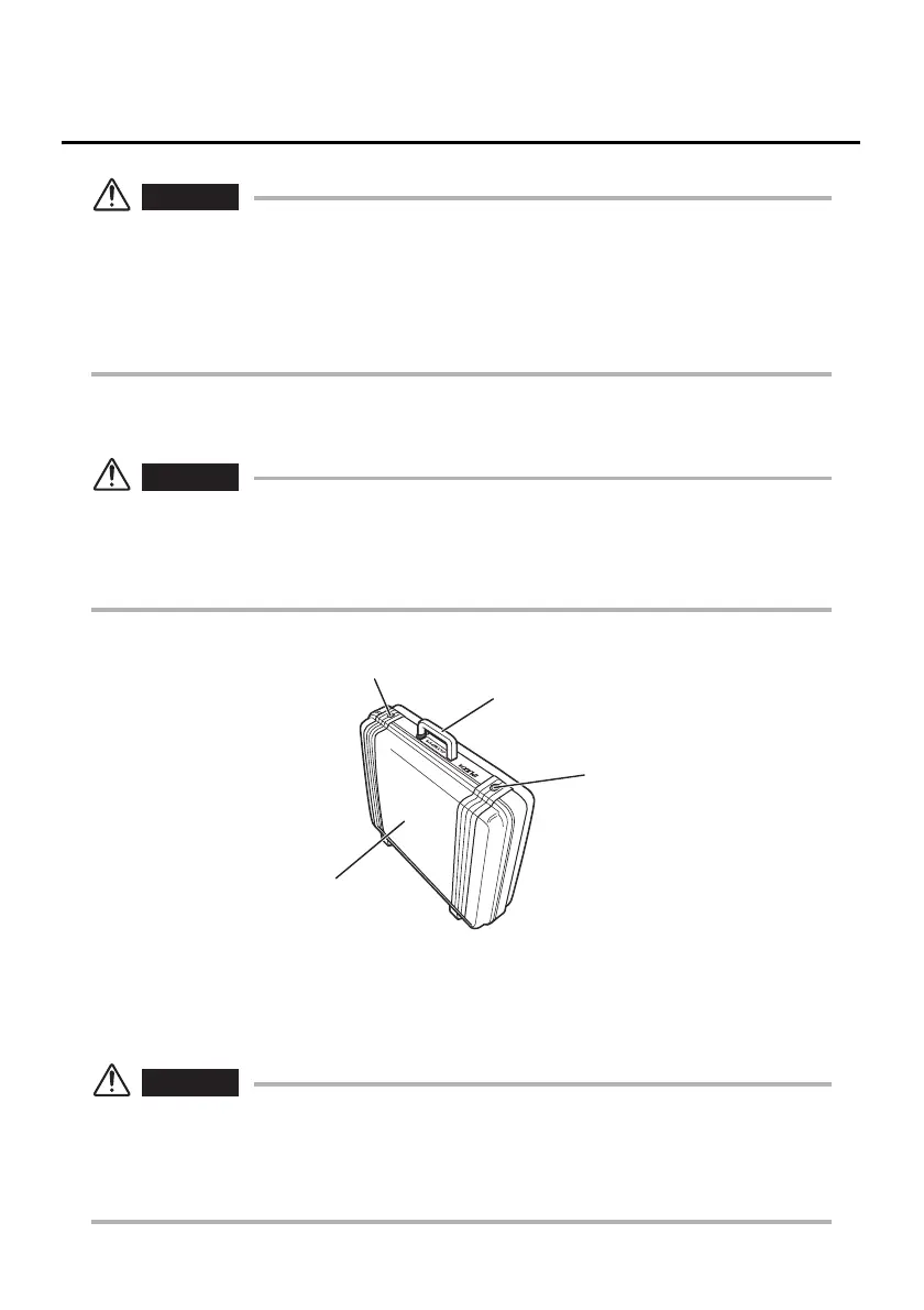 • Before transporting the case, inspect the exterior parts handles and latch of the case for