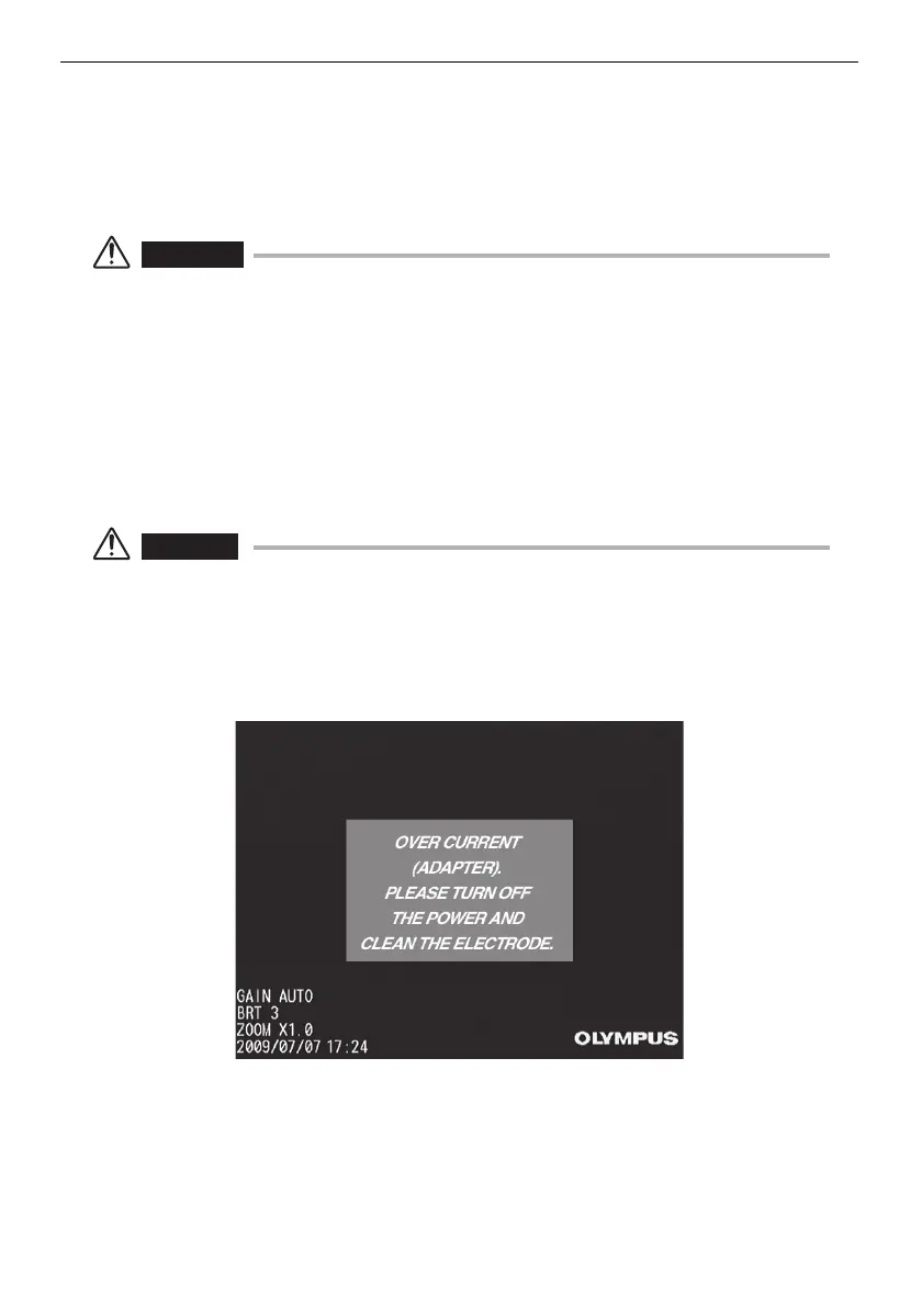 illumination turns off and the image loses focus. In this case, immediately stop the inspection,