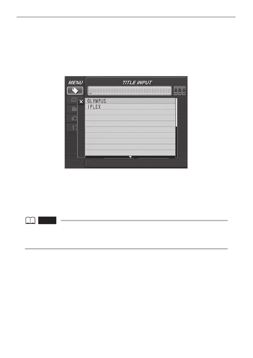 preset title list and then tilt the [MEAS/ENTER] joystick up, or the bottom title in the list and