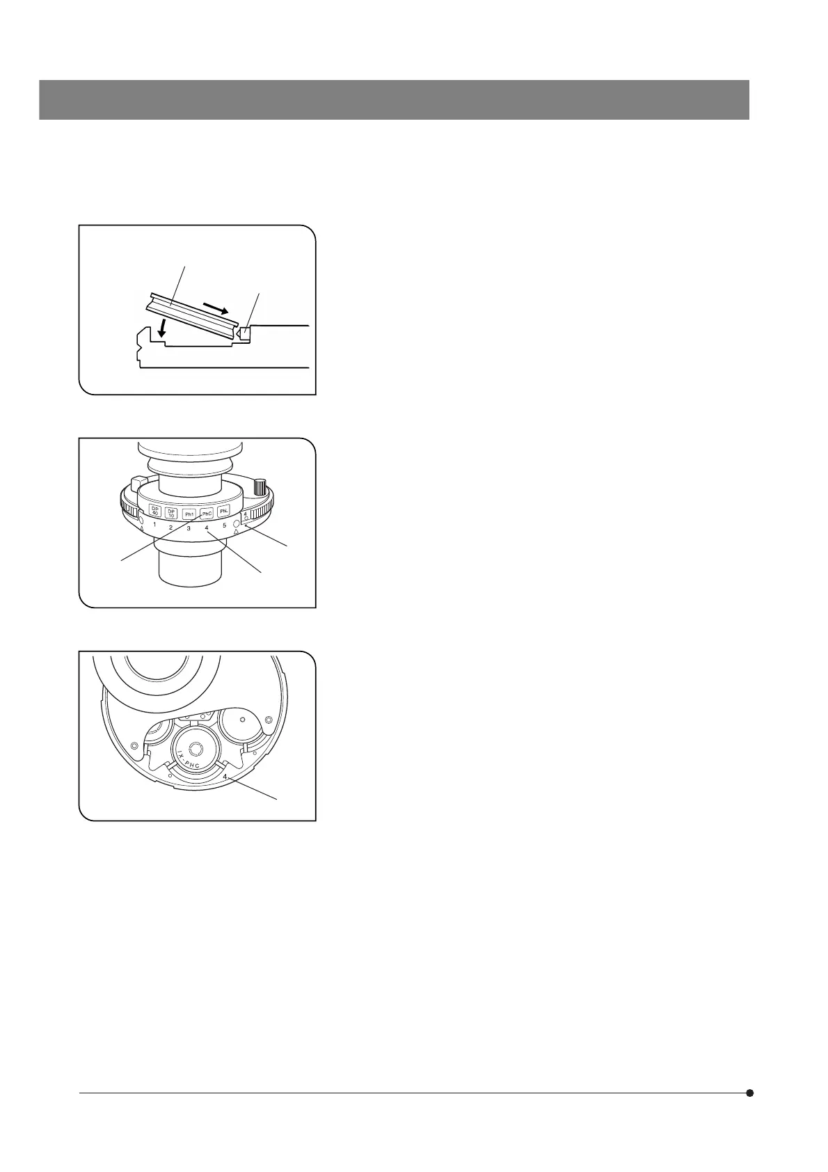 turret with the edge of the phase contrast ring …, insert the ring com-