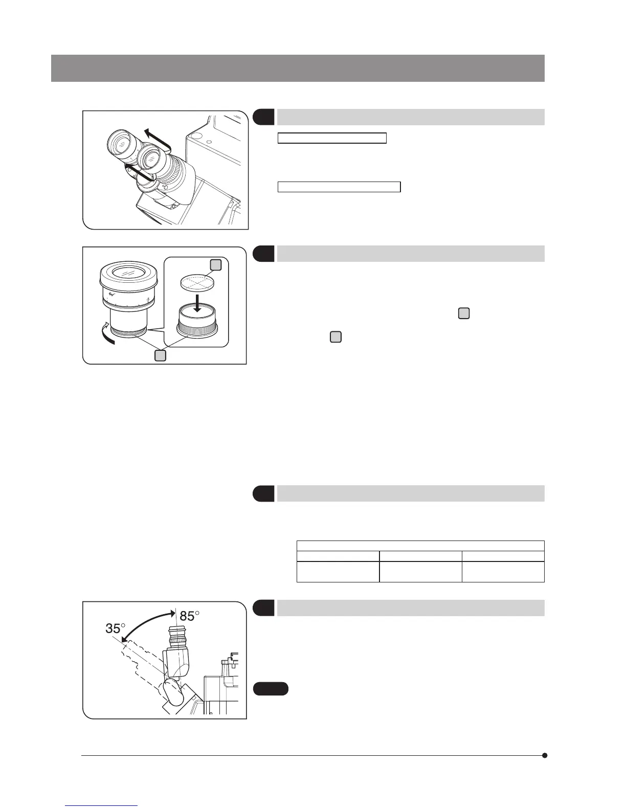 } Adjust the height and tilt of the eyepieces to obtain the most com-