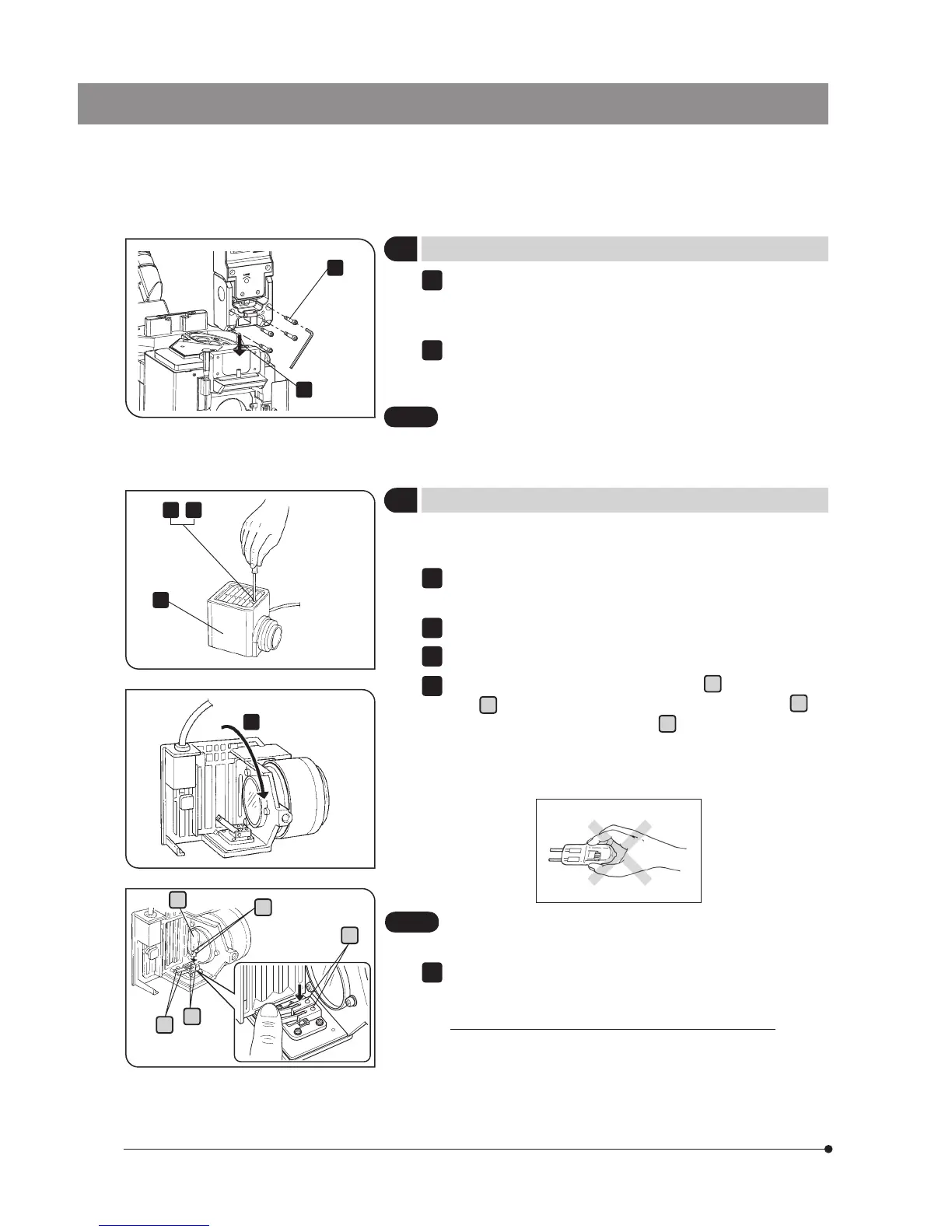 Then return the lamp clamping lever gently back to the original