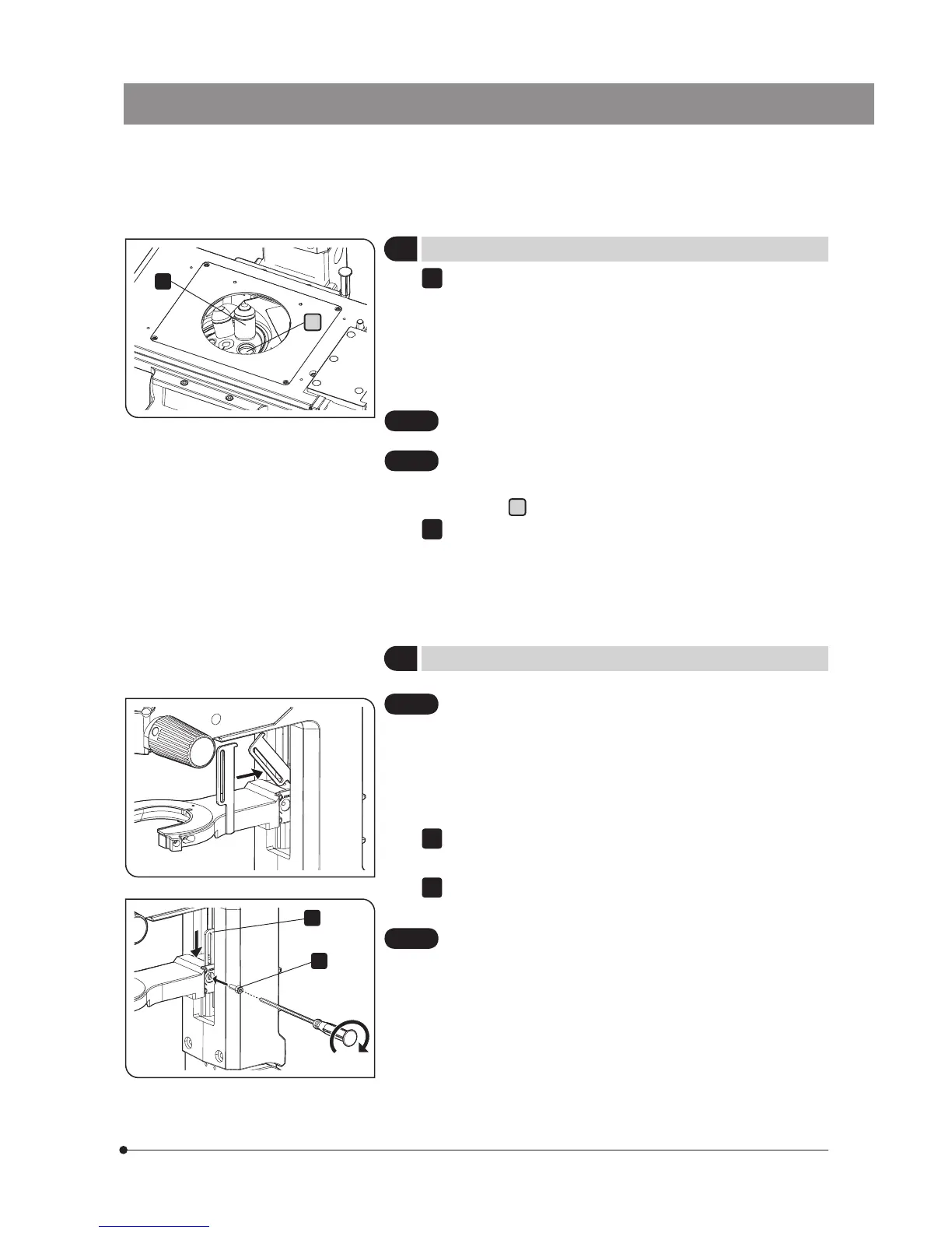 After all objective lenses are mounted, fit the stage center plate into