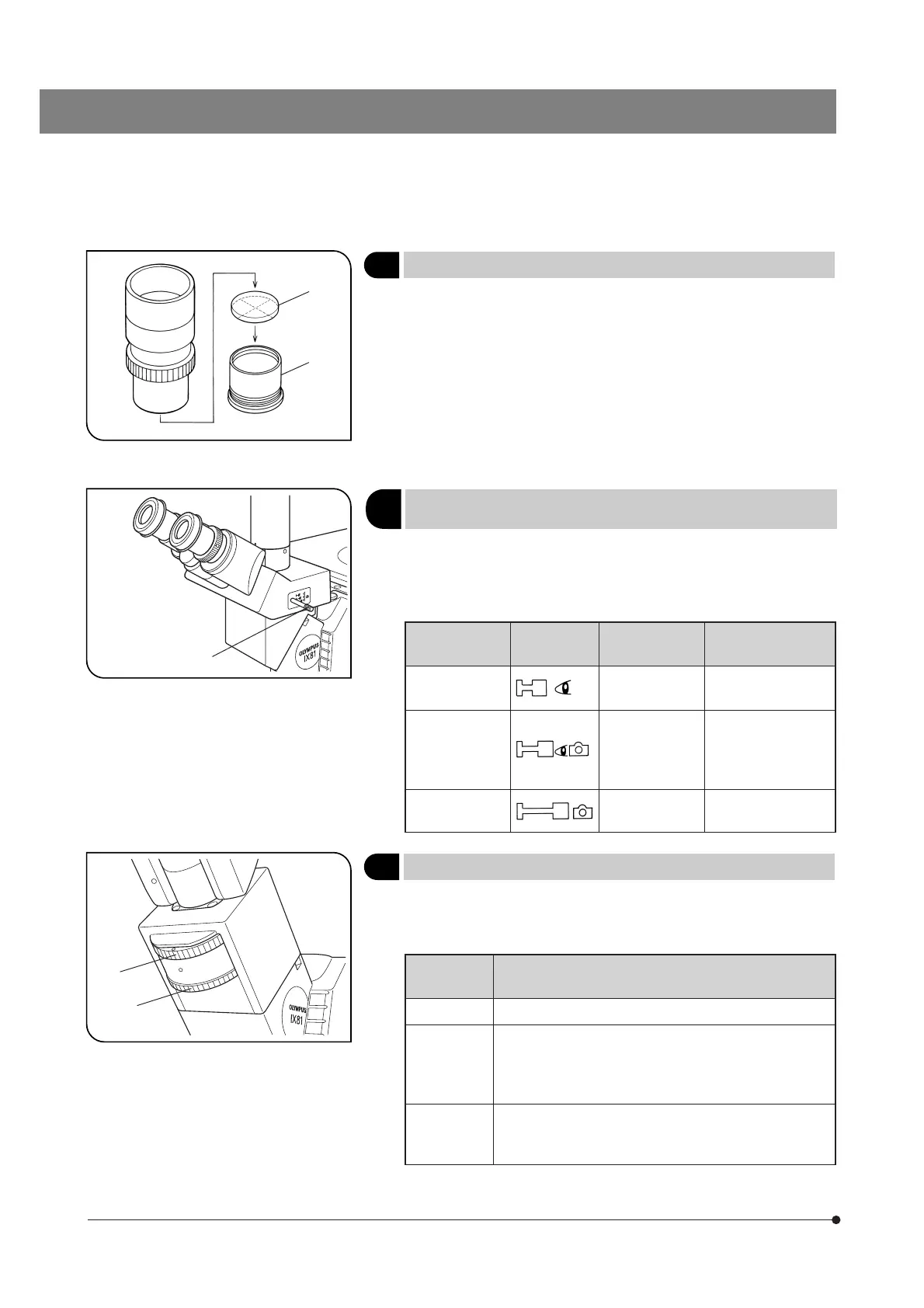 0 (2 positions) Nothing is engaged in the light path (Normal observation)