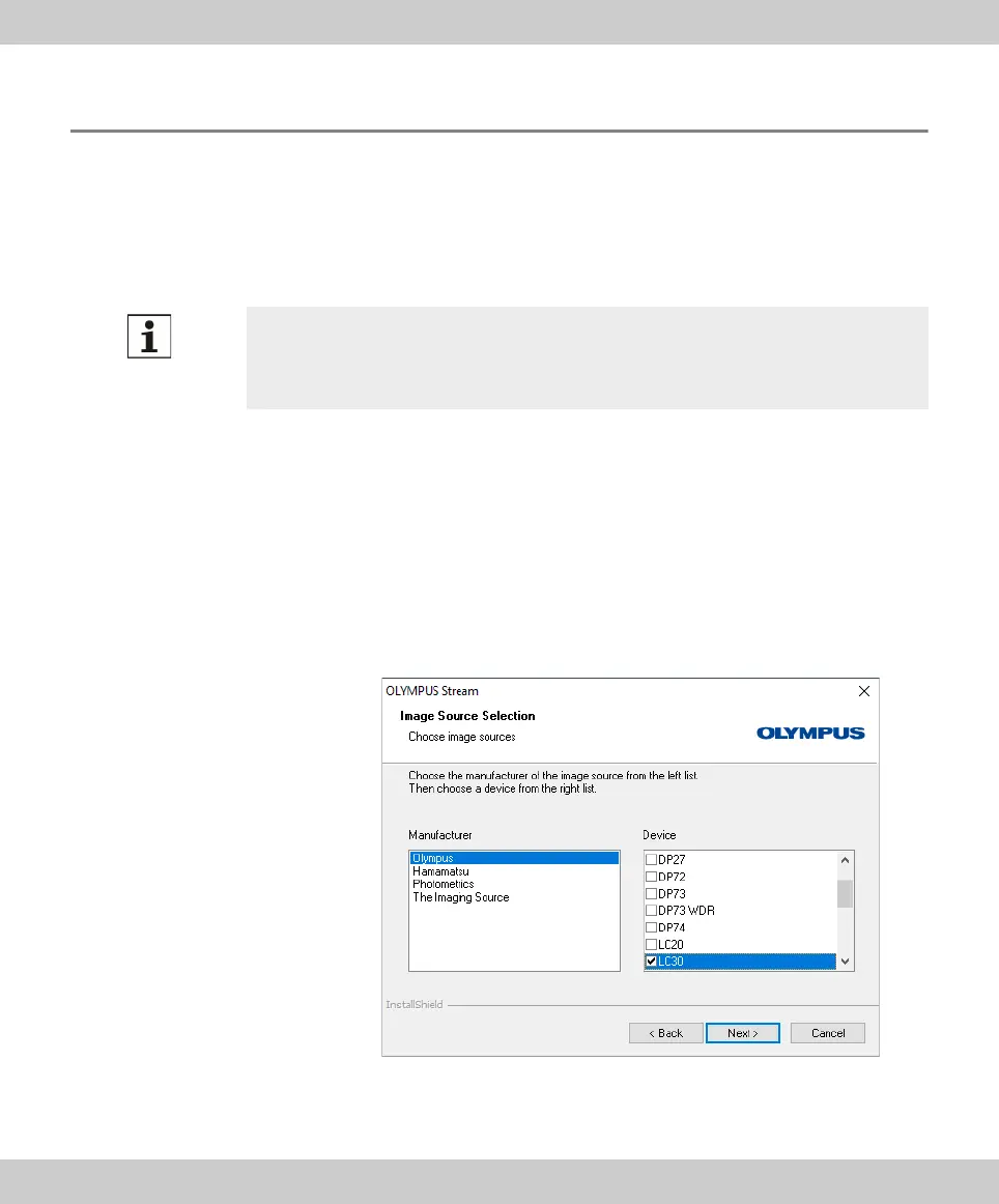 4) In the Image Source Selection dialog box, select the Olympus manufacturer.
