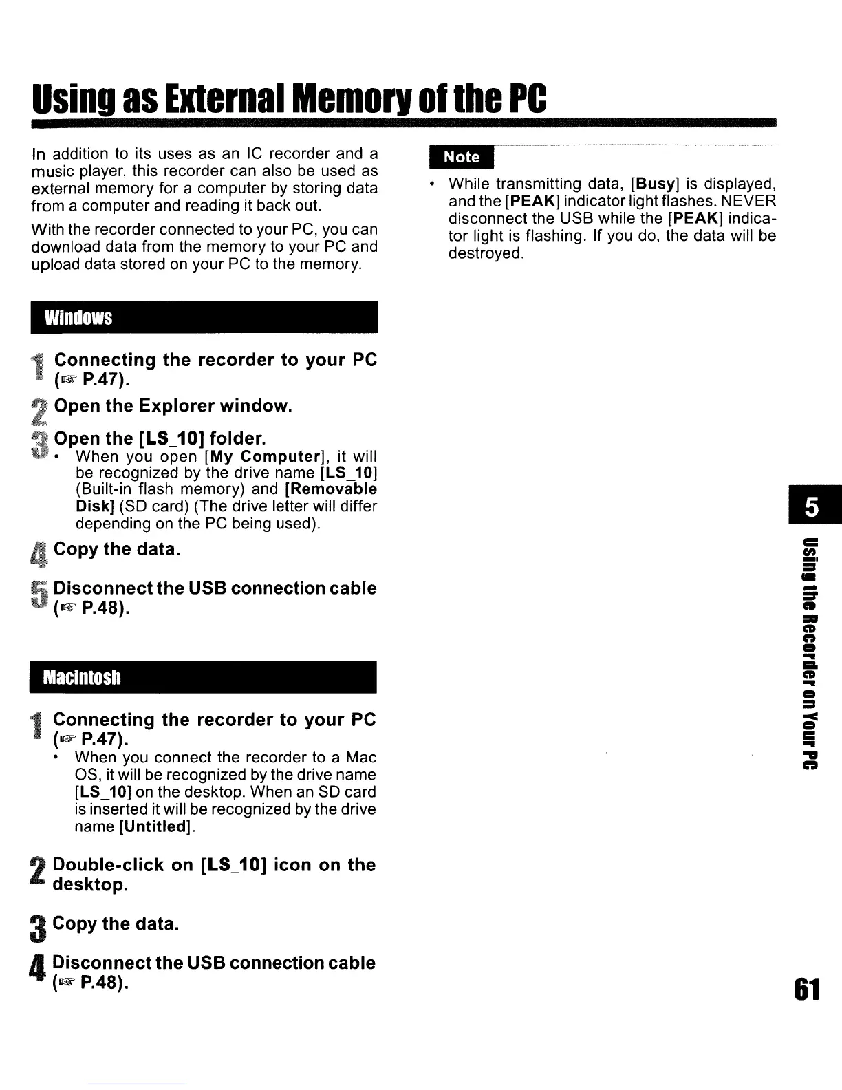 • When you connect the recorder to a Mac