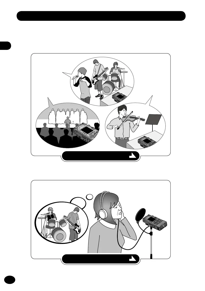 Record your singing while listening to a recording of instruments.