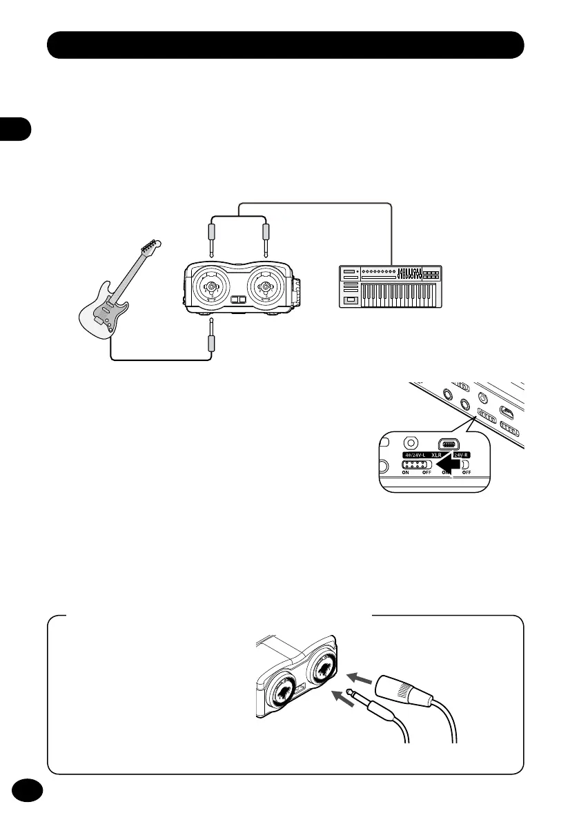 Connect a monaural instrument to the XLR/standard phone combo jack (L).