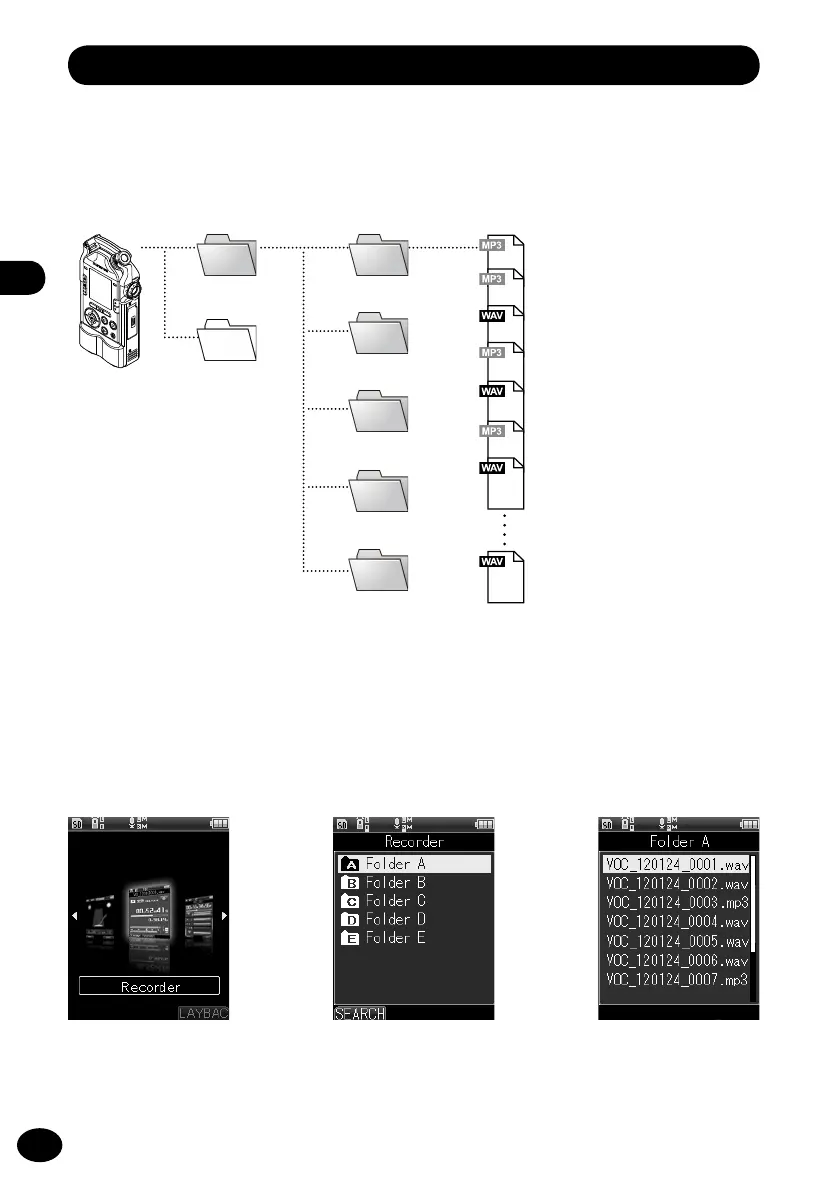 * Any files or folders directly under the [Recorder] folder will not be displayed on this recorder.