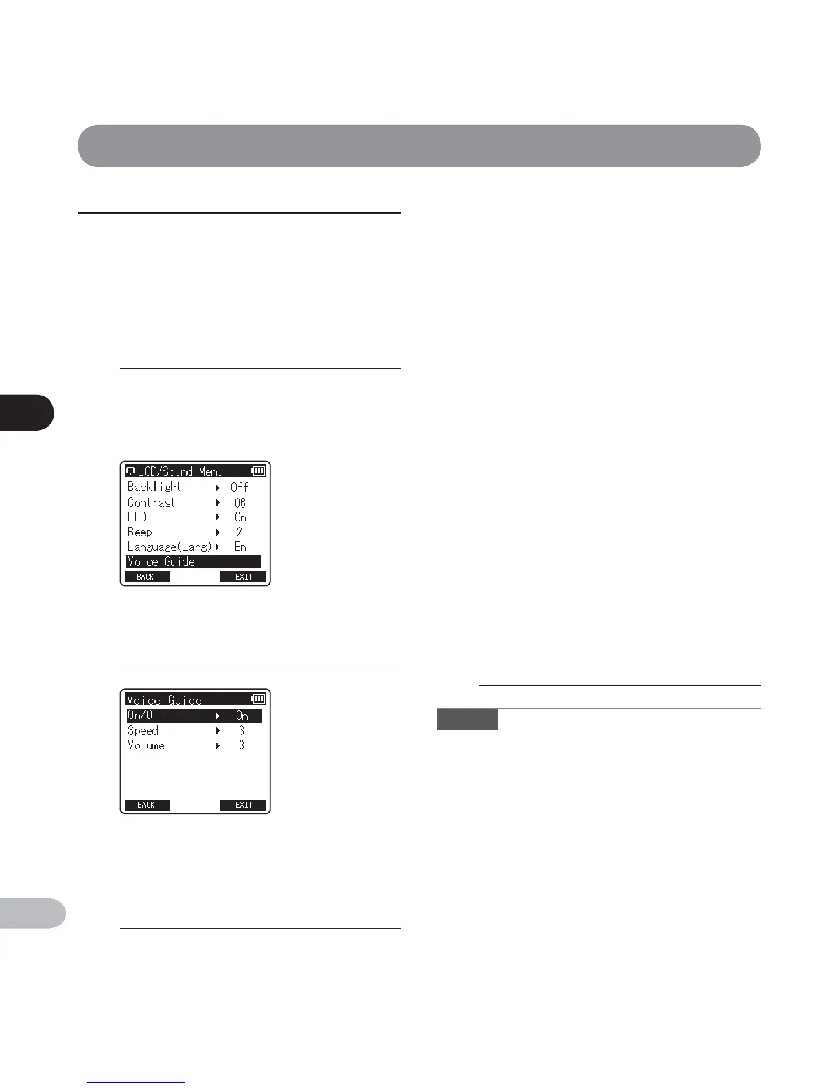 • The [ Speed ] setting in the [ Voice Guide ] settings is