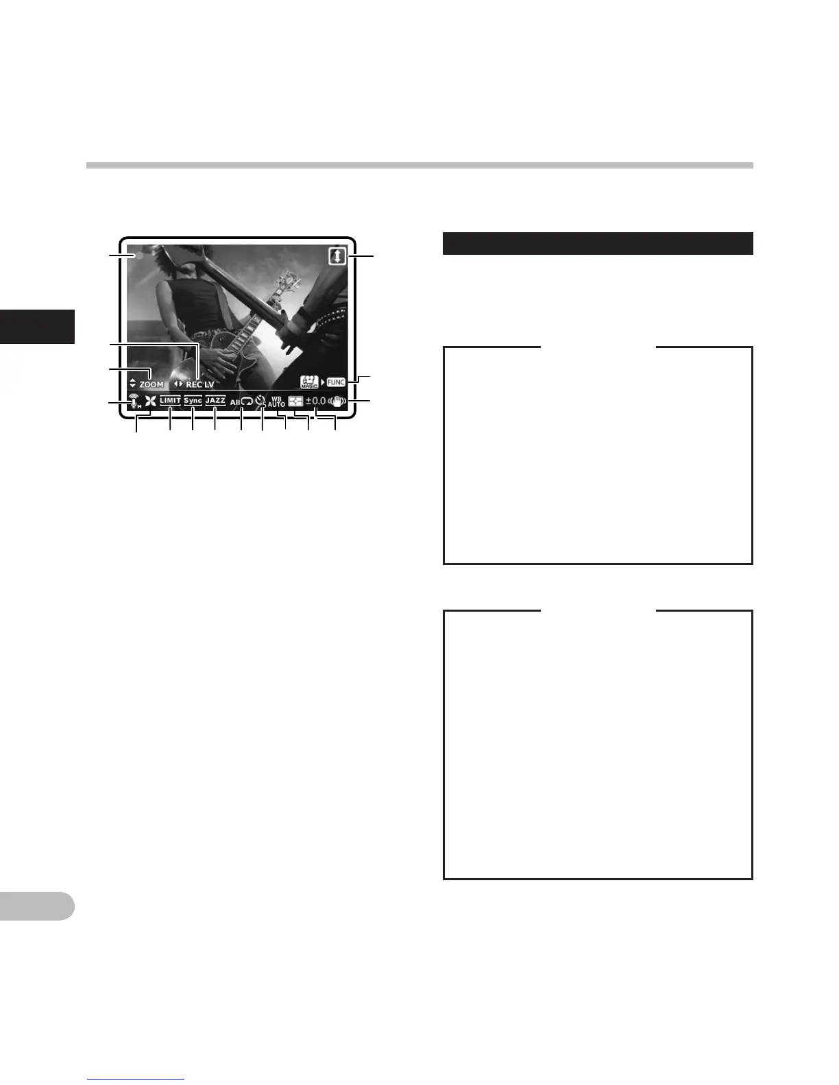 • During shooting or playback, both