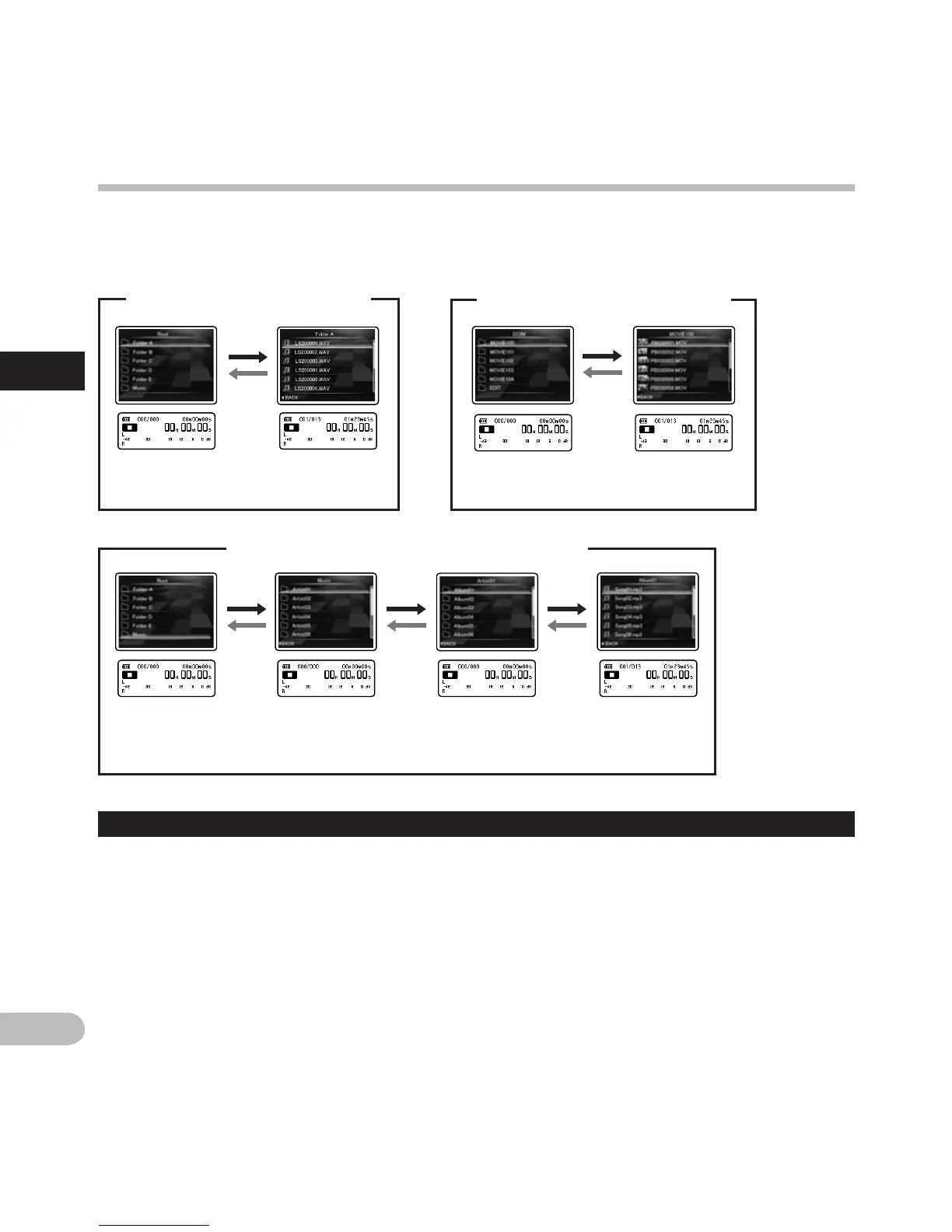 mode [Operation of the folders for music playbacks]