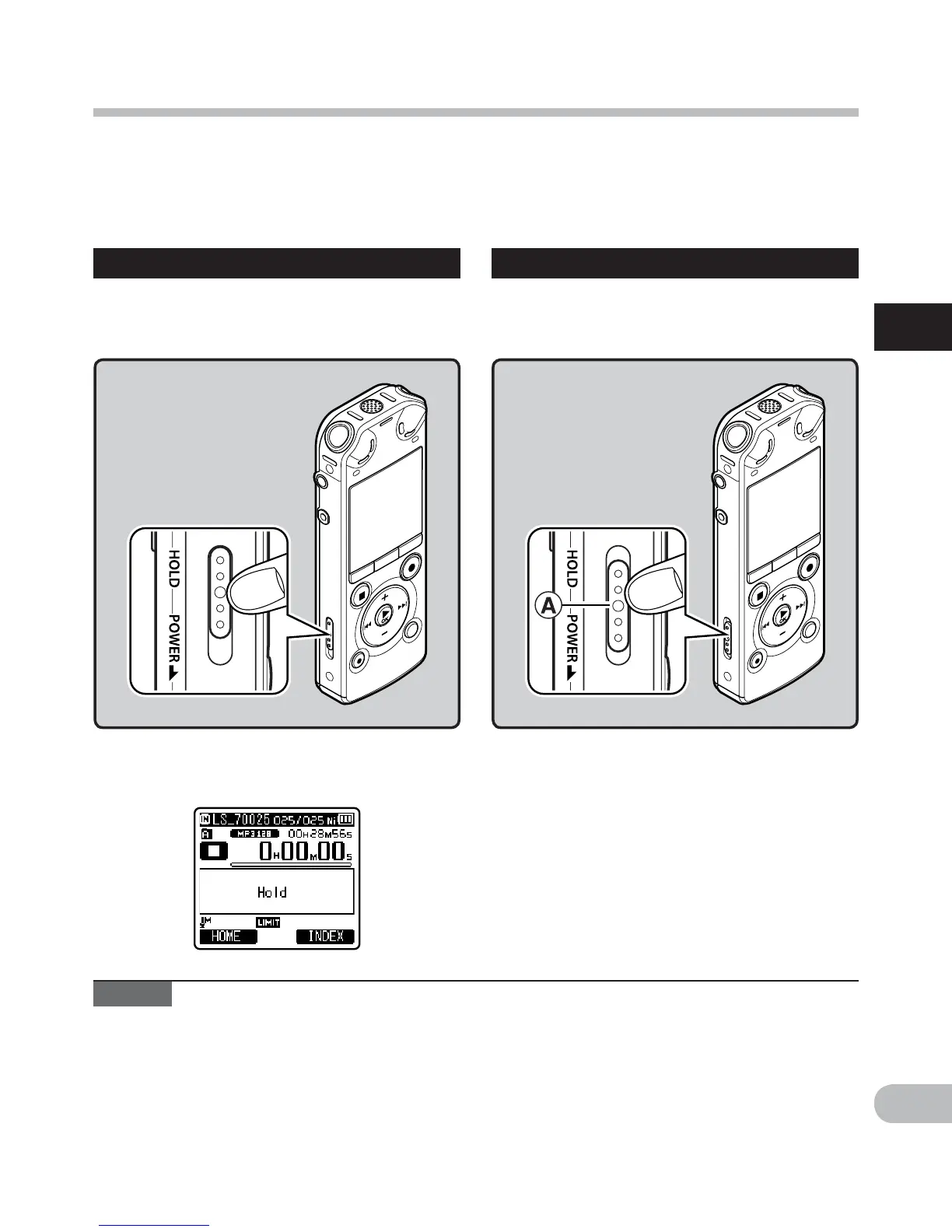 • If HOLD is applied during playback (recording), operation is disabled with the playback