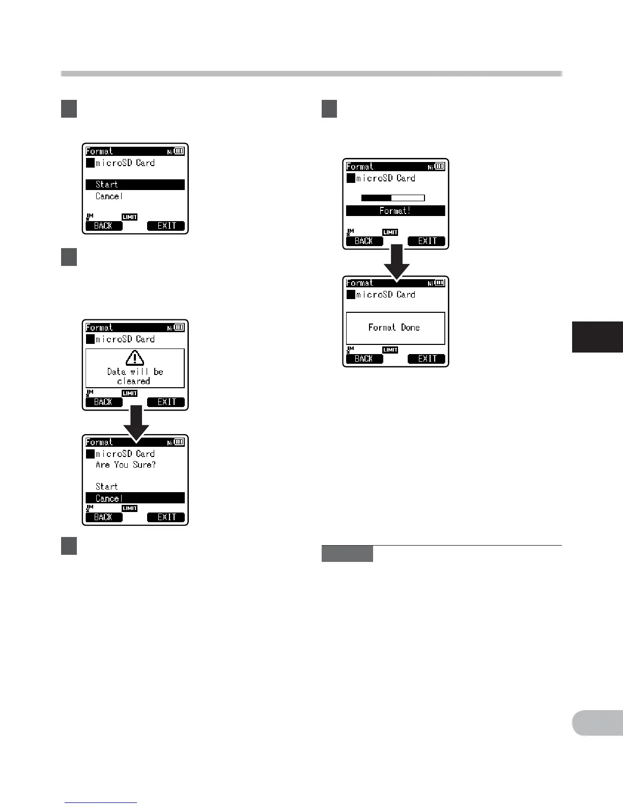 • When the recorder is formatted, all the