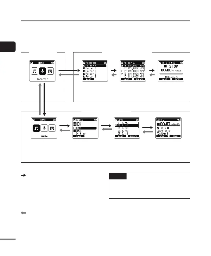 “Transferring files to a PC” (☞P.102) for a description of the voice recorder’s hierarchical