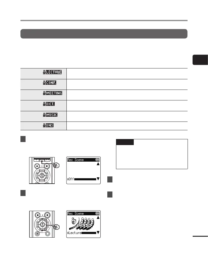 The voice recorder has preregistered templates of optimum settings tailored to various