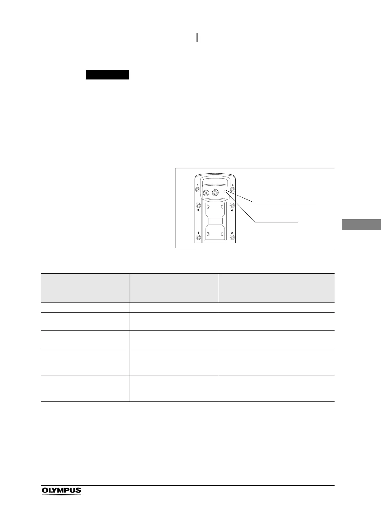 Flashing (slow) ON or flashing (fast) Battery power is hardly remaining.