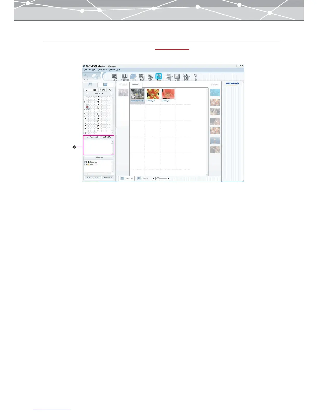 • When the image display area is in the calendar display mode, select the desired date from the calendar.