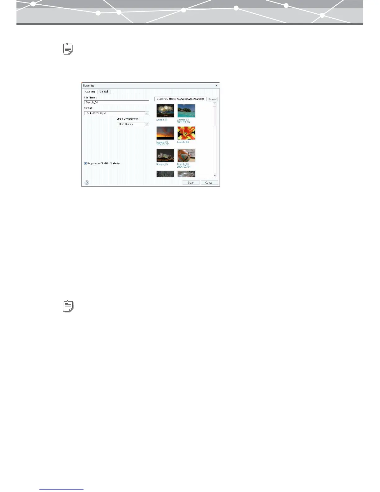 same time. The file will be registered in OLYMPUS Master with the shooting date (or the created date if the