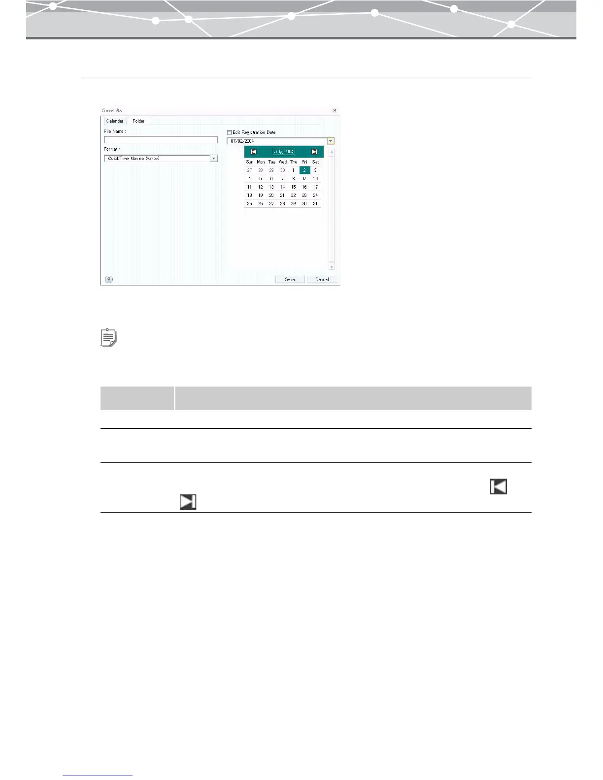 If you save a movie using the [Calendar] tab of the [Save As] dialog box, the saved movie will be registered in the