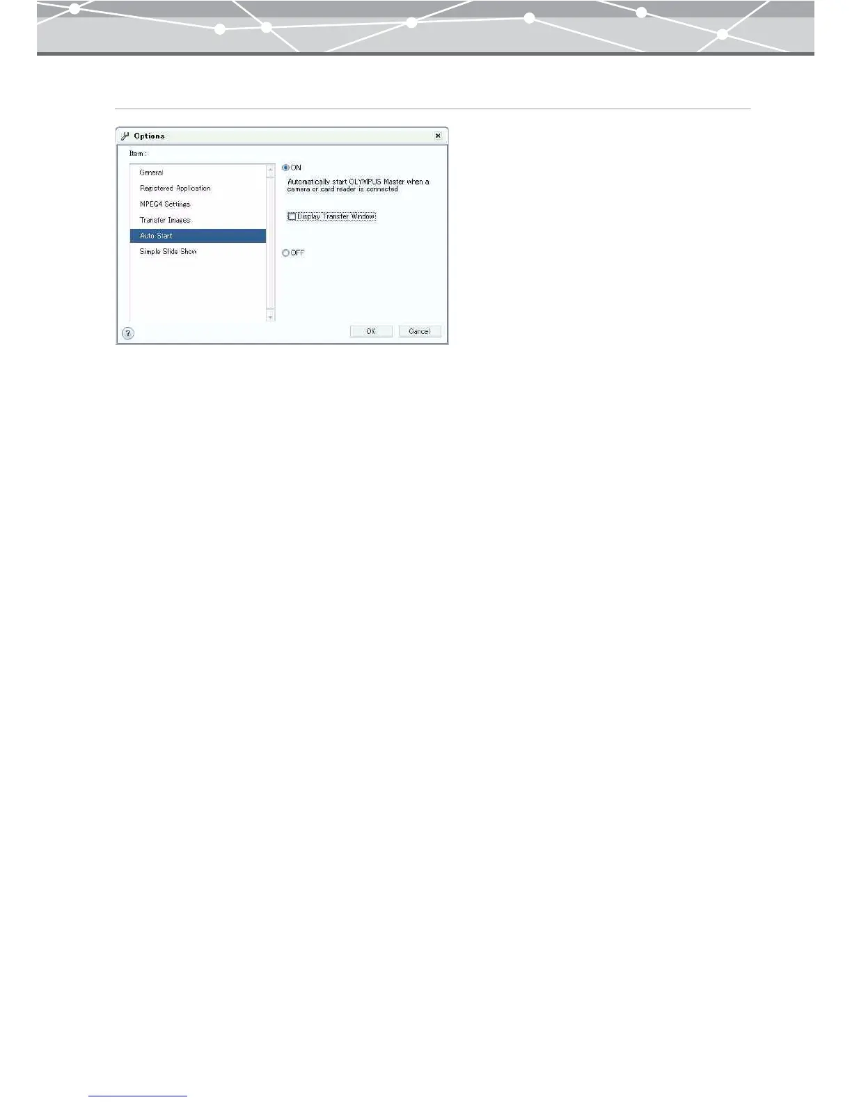 Select [ON] to automatically start up OLYMPUS Master when a camera or card reader with a DCF media