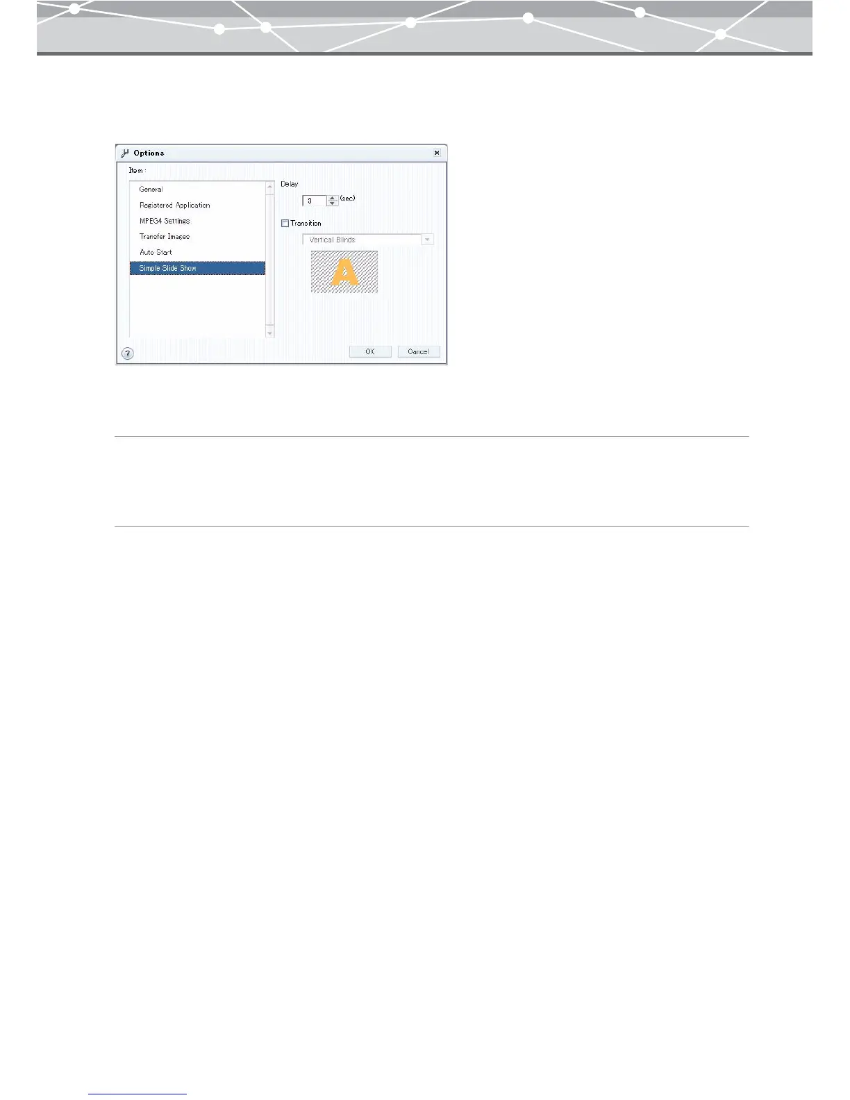 To configure slide show settings, select [Simple Slide Show] in the [Item] list box.
