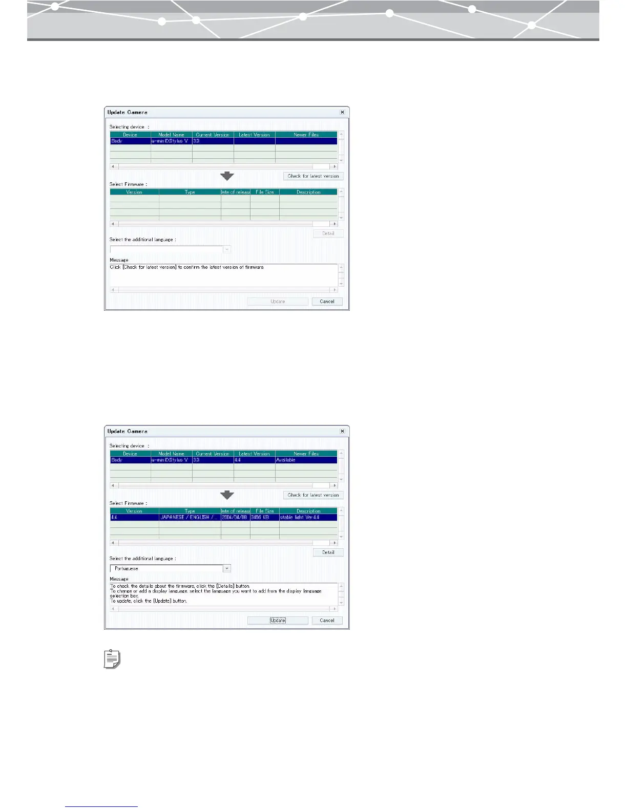 • If you want to check the contents of update before downloading, select the firmware to apply, and then click