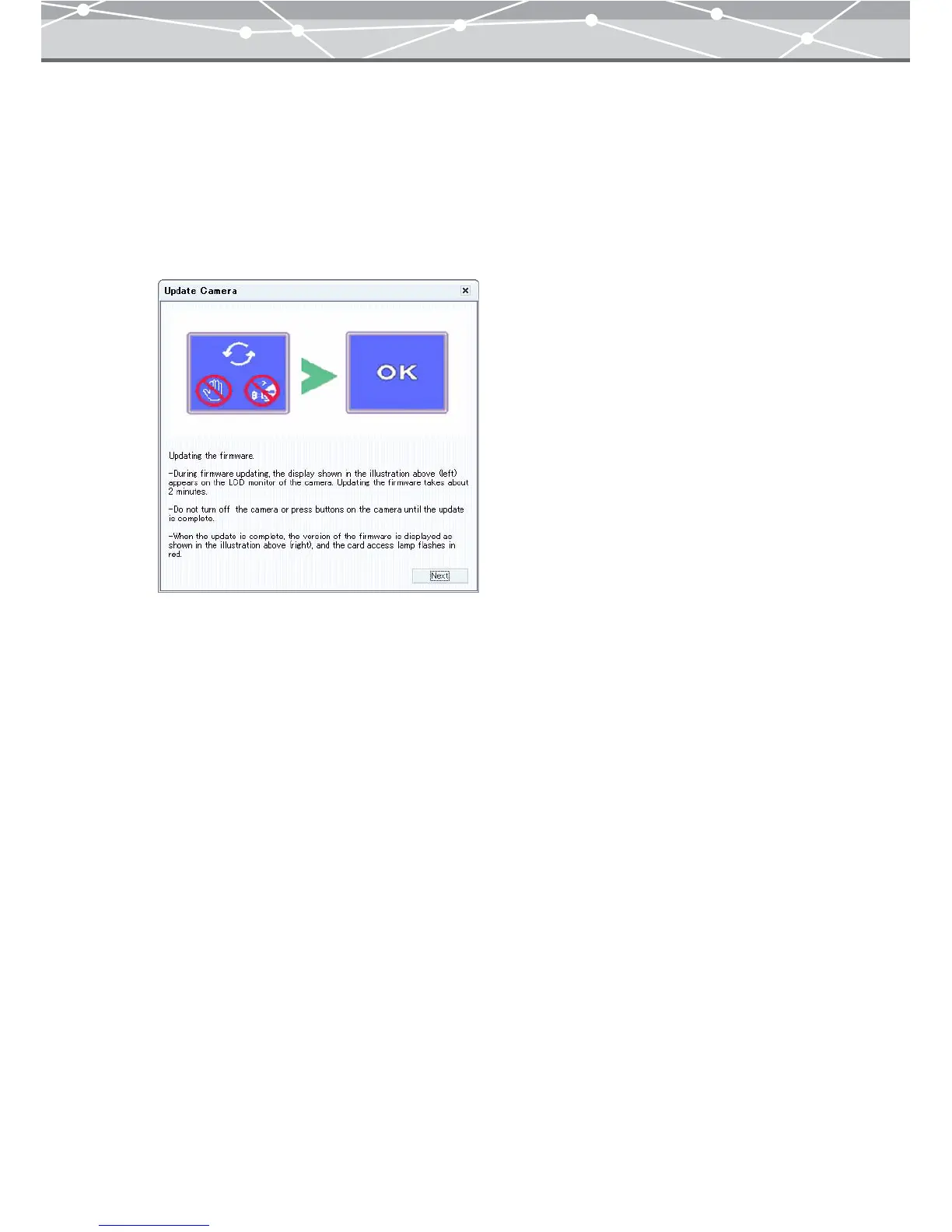 the right in the dialg box below, updating the camera is complete. Click [Next].