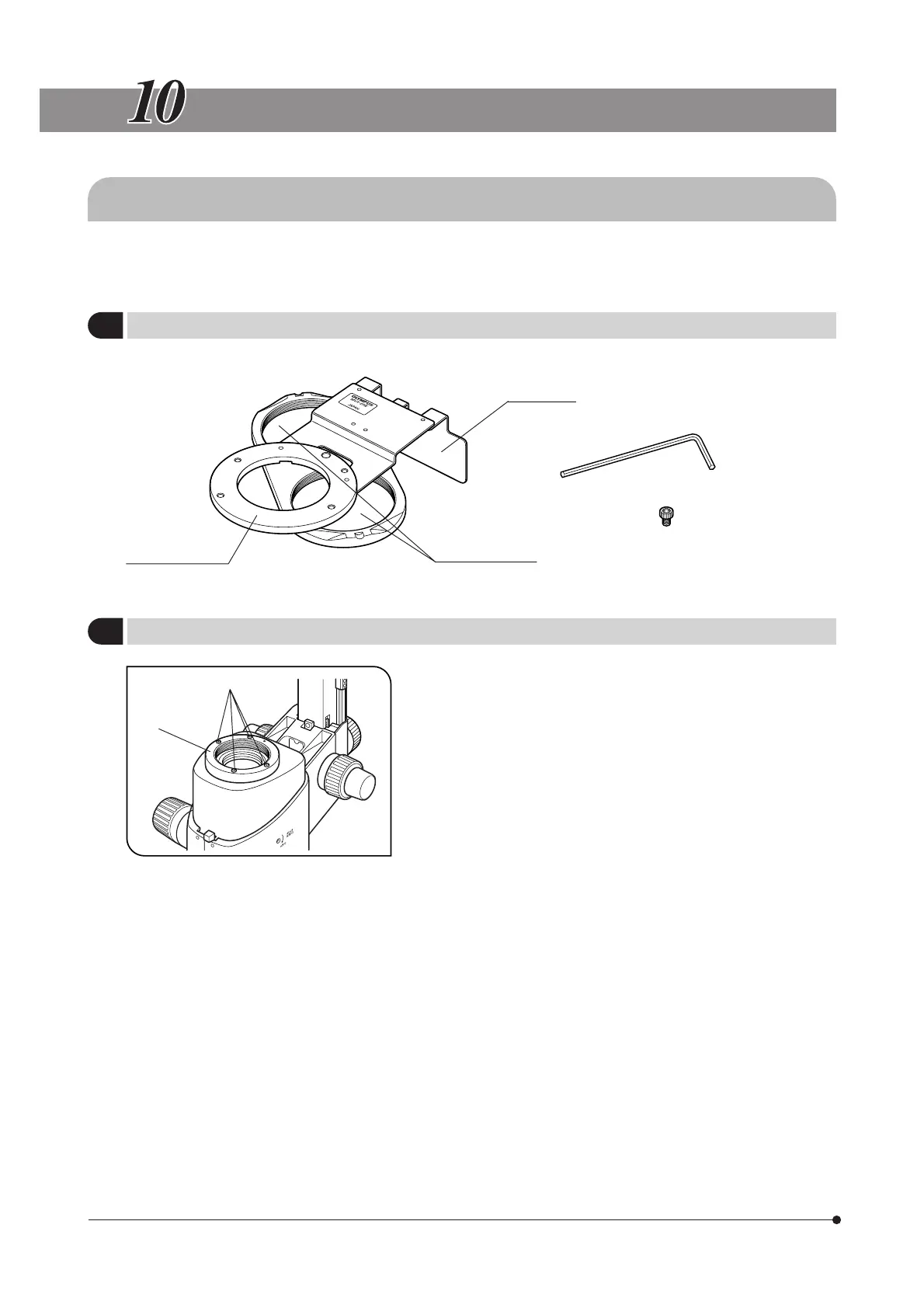 the objective mount ² by loosening the four clamping screws @ using