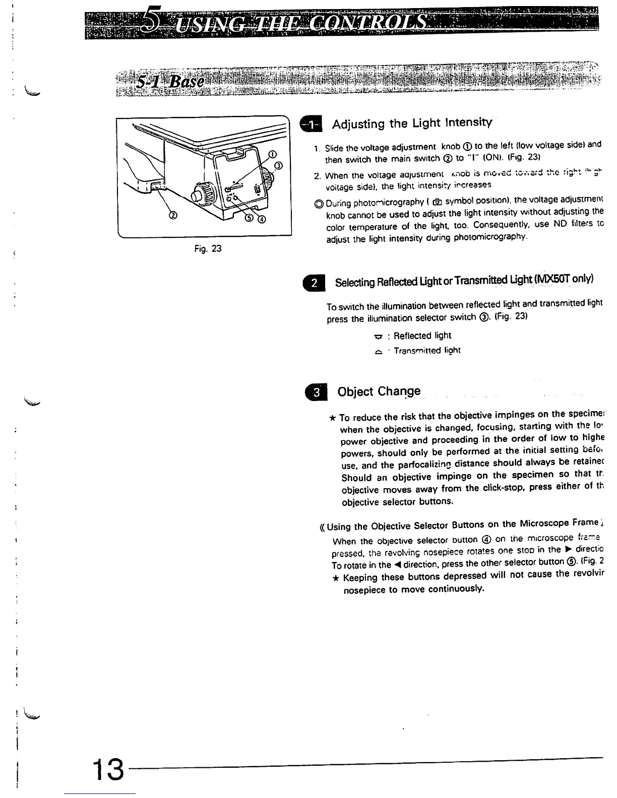 Olympus MX50A/T - Using the Microscope Controls; Base and Illumination Control Operations