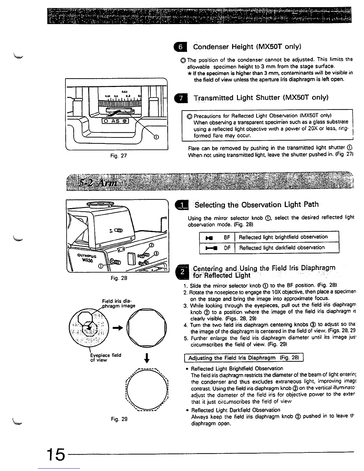 Olympus MX50A/T - Arm and Diaphragm Control Operations