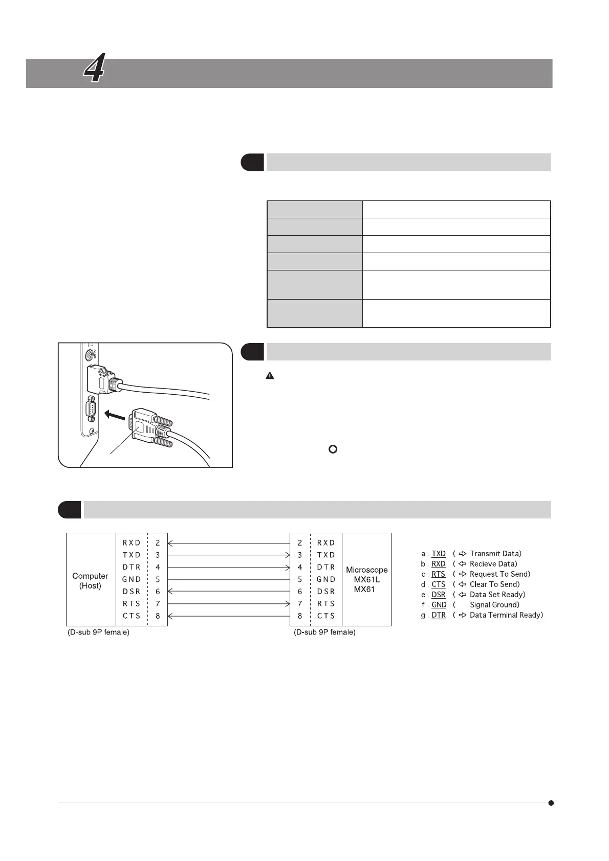 }Connecting the MX61/61L microscope with a host computer using an RS-232C cable makes serial communications